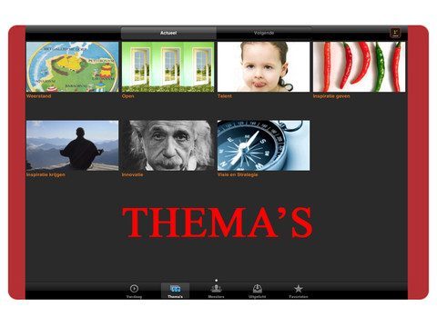 In het tabblad Thema’s kun je naar verloop van tijd alle video’s onder een thema terugvinden en het tabblad Meesters geeft toegang tot de personen die zich over meerdere thema’s laten interviewen. Uitgelicht benadrukt de meest bekeken en hoogst gewaardeerde video’s, waarbij de gemiddelde sterrenscore in het videoframe is verwerkt. Het laatste tabblad is Favorieten en spreekt voor zich.