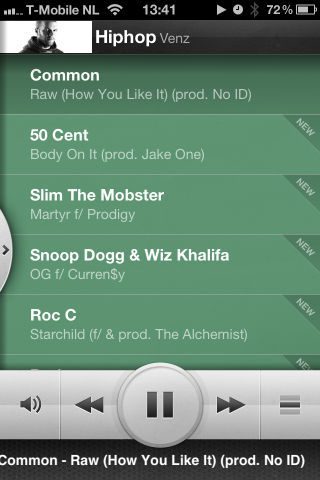 Moah, of het een betere interface is weet ik niet, vind dit wat groot en eenvoudig, het sliden door de categorieen had wel wat. Het kunnen scrollen in nummers is wel heel erg relaxt op de knop met die drie balkjes erin: midden is normale balk, bovenste is sliden en de onderste dan is de balk deels weg. zonde dat in landscape inderdaad de balk onwijs in de weg zit…