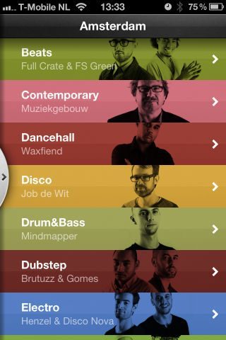 Nu kun je al luisteren naar de selectie van 22 genres met elk 22 tracks van Amsterdam en Brussel. De keuze tussen de twee steden is de eerste die je maakt in de nieuwe app, waarna je via een volgende pagina met gekleurde balken een genre selecteert. Een functie die nog niet in 22tracks zat, maar nu wel is geïmplementeerd, is de knop op een nummer op pauze te zetten. In de landscape-modus van de iPhone of iPod touch, kan je bovendien informatie over de artiest zien. De leesbaarheid daarvan stoeit wel wat met de play-balk die meebeweegt met de richting van het scherm. De laatste verbetering is de audiokwaliteit: die is er beter op geworden sinds versie 2.0.