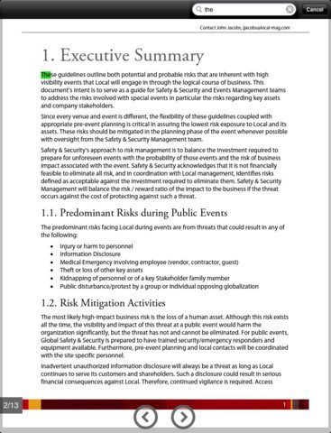Je kan een PDF in drie verschillende weergaven zien: als een uitgezoomde pagina volledig in beeld, ingezoomd op aangepast niveau of doorlopend, waarin een document van meerdere pagina’s is opgemaakt als lange strook papier. Daarnaast kun je natuurlijk naar hartelust inzoomen met de bekende pinch-to-zoom beweging die je uitvoert met twee vingers. Een dubbeltik op het scherm is voldoende om terug te keren naar de gehele pagina.