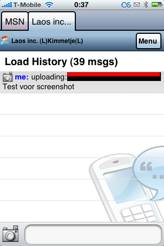 Alleen jammer dat je geen foto’s uit je library kunt versturen. Tevens de foto’s die je stuurt worden niet als bestand gestuurd maar geupload naar een website…