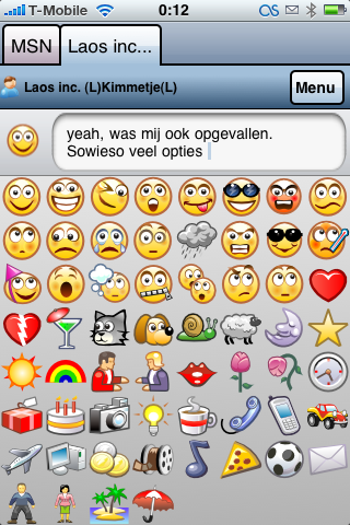 Er kunnen wat mij betreft best nog een paar dingetjes aangepast worden. Zo is het tekstvenster – op m’n iPod touch – niet kloppend. Zie sceenshot: http://twitpic.com/3150 Daarnaast vind ik het best jammer dat er maar één MSN adres is toe te voegen.