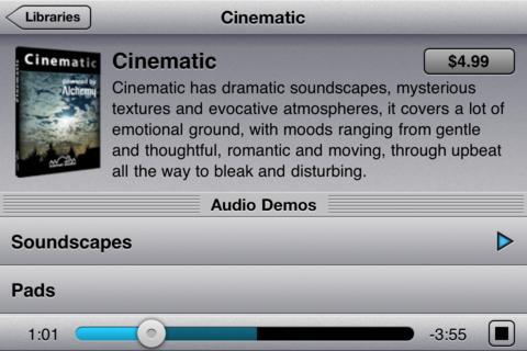 Door de balk met soundboards lang ingedrukt te houden, zie je de bibliotheek met pakketten die je erbij kan kopen. Er zijn drie pakketten van vier euro die elk 25 nieuwe soundboards leveren: Cinematic, Arp Dimensions en BigTone). Je kan de verschillende segmenten van de soundboards (effecten, loops en beats) alvast voorproeven met de handige sample-functie. Zo weet je wat je ongeveer in huis haalt. De duurste in-app aankoop heet Pro Upgrade en voegt niet alleen 100 nieuwe soundboards toe, maar ook een afstandsbedieningsfunctie. Daarmee kan je Alchemy of Alchemy Player op de pc en Mac met de iPhone of iPad bedienen.