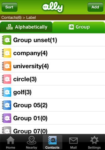 Bijzonder is dat Ally zich richt op grootgebruikers. Mensen waarmee je contact hebt gelegd via Ally, andere sociale netwerken waarmee je de app kan verbinden of de contactenlijst van je telefoon, kunnen ingedeeld worden in allerlei verschillende groepen. Zo is het eenvoudig te achterhalen waar collega’s uithangen – of in welke kroegen vrienden aan de bar staan. Per groep kunnen instellingen (voor push-meldingen) aangepast worden. Hoeveel ‘shouts’ (opmerkingen) mensen mogen maken of hoeveel mensen live gevolgd kunnen worden. Contacten kunnen daarnaast ook alfabetisch worden gerangschikt.