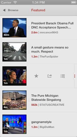 Jasmine (gratis) – Apple’s YouTube-app is dood, lang leve Jasmine op de iPhone 5. Moet het nog even stellen zonder uitgebreide zoekfilters, maar de vormgeving van deze YouTube-app-met-alles-erop-en-eraan is een baken van rust. Video’s spelen door op de achtergrond.