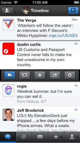 Tweetbot (€2,39) – Dé iPhone-keuze van de fervente Twitteraar. Tweetbot is strak, overzichtelijk, bedient simpel en bevat de optie om je timeline automatisch te verversen met de laatste berichten. Op de iPhone 5 nog overzichtelijker dan ooit tevoren.