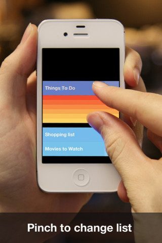 De gedachte achter Clear luidt ‘simplify our lives’. Dat was de insteek van Realmac Software tijdens de ontwikkeling van haar eerste applicatie voor Apple’s telefoon. In de praktijk betekent het dat je in Clear drie lagen menu’s hebt. De onderste is een lijst met items, daarboven heb je een lijst met verschillende to-do lijsten en daarboven kom je in het hoofdmenu van de applicatie, waar zich enkele opties verschuilen. Zodra je de app voor het eerst opstart, word je meteen uitgelegd dat er geen knop bij komt kijken om te navigeren tussen de menu’s. De eerste takenlijst die je in beeld ziet, is heel slim een lijst met acties die je kan uitvoeren om de app te bedienen. Je krijgt meteen aangeleerd dat je een menu omhoog gaat met een pinch-to-zoom beweging. Knijp twee vingertoppen naar elkaar toe en je belandt razendsnel op de bovenliggende pagina. Druk simpelweg op een lijst en je gaat er naartoe.