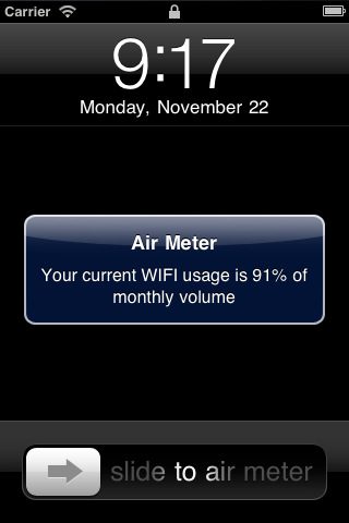 Air Meter houdt bij hoeveel data je verbruikt via 3G/GPRS, Wi-Fi en kan meldingen versturen als je bijna aan je datalimiet raakt.
