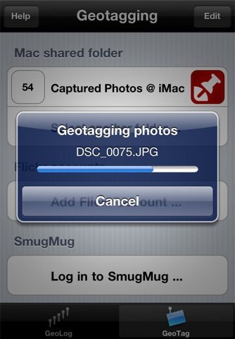 Stel: je maakt een fraaie fietstocht die je in beeld wil brengen. Met een professionale camera maak je bij elke stop een foto. Op de iPhone heb je ondertussen GeoLogTag draaien, die de locaties waar je bent registreert. Bij thuiskomt kopieer je de foto’s van de professionele camera naar een map op de Mac. GeoLogTag, die op hetzelfde Wi-Fi netwerk draait als de Mac, verwerkt vervolgens de locatiegegevens van het tijdstip van elke foto. Volgens ontwikkelaar Chris Cornelis is het al bij meer dan 4000 verschillende fototoestellen gelukt. In plaats van een map op de Mac, werkt het toekennen van de locatiegegevens ook bij direct uploaden naar Flickr en SmugMug, twee online fotodiensten.