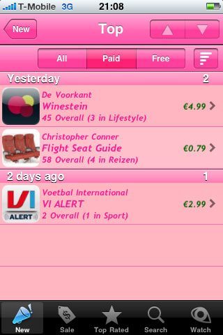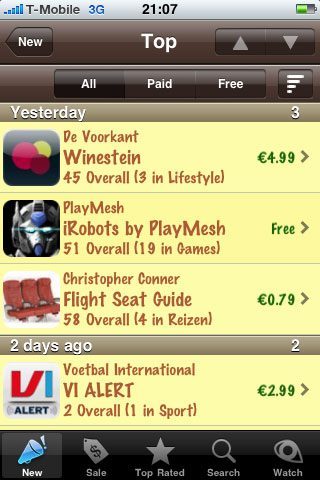 AppMiner, waarmee je iPhone-applicaties goedkoop kunt aanschaffen, heeft een update gekregen naar versie 3.0. AppMiner houdt de prijzen in de App Store in de gaten en waarschuwt wanneer een applicatie goedkoper of zelfs helemaal gratis is geworden. Veel ontwikkelaars passen hun prijzen namelijk regelmatig aan om betere rankings en beoordelingen te krijgen. AppMiner is één van de applicaties die dergelijke prijswijzigingen in de gaten houdt. Soortgelijke applicaties zijn te vinden in een tip die we onlangs publiceerden over het ontdekken van nieuwe iPhone-applicaties. In vergelijking met andere applicaties heeft AppMiner het voordeel, dat ook de Nederlandse App Store aanwezig is en dat je naar wens de prijzen in euro’s te zien krijgt.