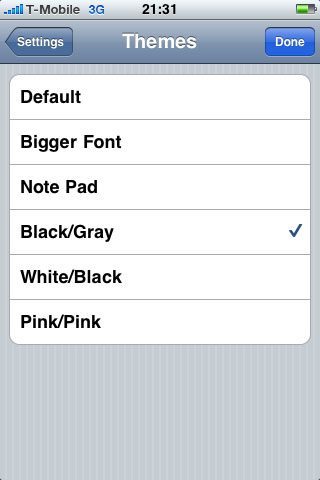 - Een van de nieuwe thema’s: zwart/grijs. Hier zie je ook de nieuwe functies Buzz (linksboven) en Lists (rechtsonder).