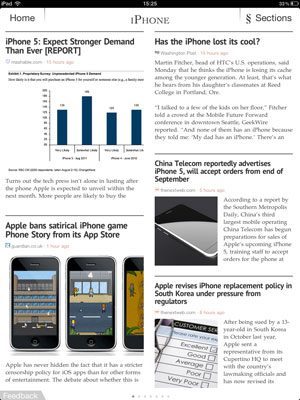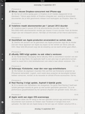 Reeder (€3,99) – Mocht je al een Google-account gevuld met interessante nieuwsbronnen hebben, dan is Reeder makkelijk in gebruik te nemen. Je hoeft namelijk alleen maar in te loggen met jouw Google-account om de bronnen binnen te halen op de iPad. Vervolgens krijg je een chronologisch overzicht van het laatste nieuws, waar je tot in detail doorheen kunt bladeren door te tappen en te pinchen. Een flink aantal functies, zoals de mogelijkheid om artikelen binnen de app volledig te laden, zorgen ervoor dat Reeder een van de meest uigebreide rss-lezers is. Met een druk op de knop stuur je artikelen naar Twitter en Facebook.
