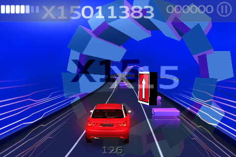 Ik zou op basis van de screenshots zelfs durven zeggen dat dit Audiosurf IS, maar dan met een Audi A1 ipv een ruimteschip.