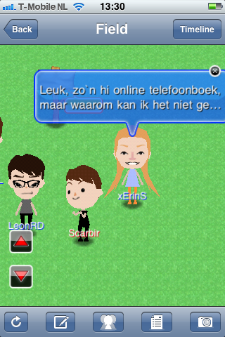 Verder is Avatwee ook te gebruiken als normale Twitter-cliënt. In de bovenste categorie van het hoofdmenu, Field, kun je behalve het veld ook de timeline lezen, tweets beantwoorden of retweeten en zelf een tweet schrijven. Wel is Avatwee is afkomstig van de Japanse gameproducent Namco en dat merk je in de uitvoering. De indeling van het hoofdmenu is allesbehalve logisch en de applicatie heeft irritant hoge fluitmuziek en hard klinkende geluidseffecten. Eigenschappen die menig Japans spel rijk is.