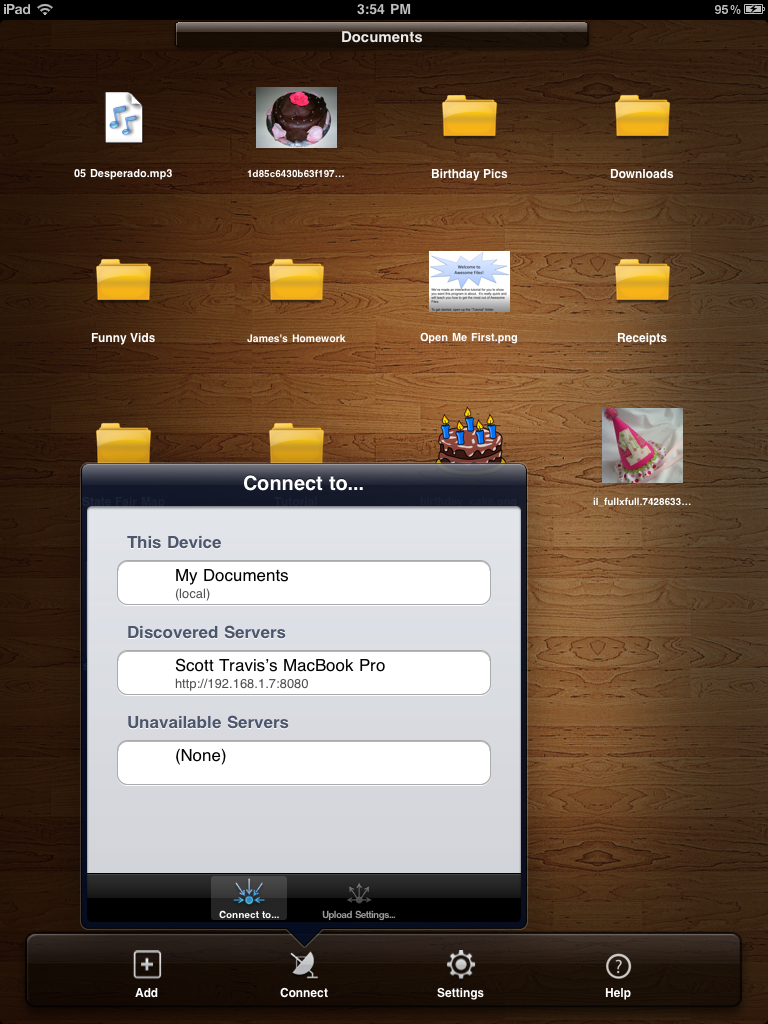 Zo kun je via Wi-Fi direct bestanden uitwisselen tussen een Mac en je iPad. Hiervoor moet je wel de gratis applicatie Awesome Files Connect installeren op je Mac. Je kunt via Wi-Fi ook bestanden uitwisselen tussen verschillende iPads. Wil je bestanden met iemand anders delen die niet op je Wi-Fi-netwerk zit, dan kun je ze mailen vanuit de applicatie. Daarnaast heeft Awesome Files HD een browser waarmee je bestanden kunt downloaden en lokaal kunt opslaan.