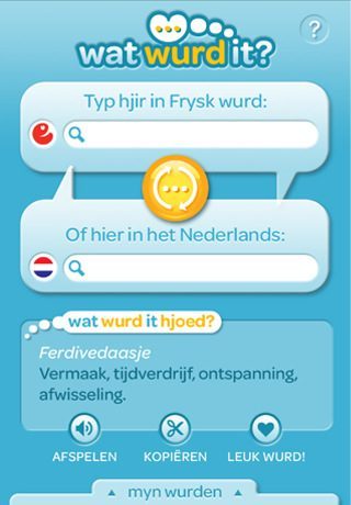 Litten we dizze applikaasje iens in kâns jaan. Aan het einde van vorig jaar kondigden we aan dat er een Fries woordenboek zou verschijnen voor de iPhone. Sindsdien hebben we er weinig meer van vernomen, maar naar nu blijkt is Wat Wurd It? al enige tijd in de App Store te vinden. Met de blauw-witte applicatie kun je Friese woorden invullen en die vertalen – en andersom. Veel Friese woorden worden met een knop voor je uitgesproken zodat je niet op je plaat hoeft te gaan.