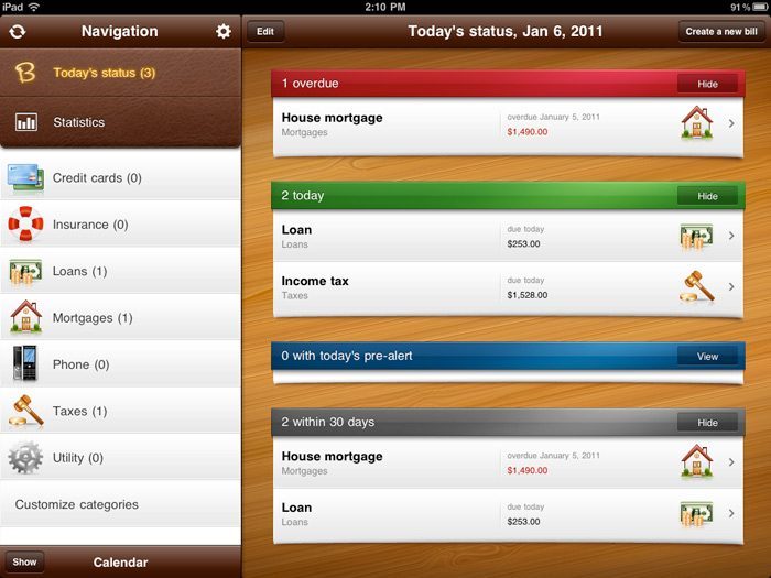 Als je veel rekeningen thuisgestuurd krijgt is het een flinke administratie om bij te houden met welke je wanneer moet betalen en of je een rekening al hebt betaald. Bills ~ On your Table HD helpt je daarbij. Het is een zeer uitgebreide applicatie waarmee je de administratie van je rekeningen kunt bijhouden.