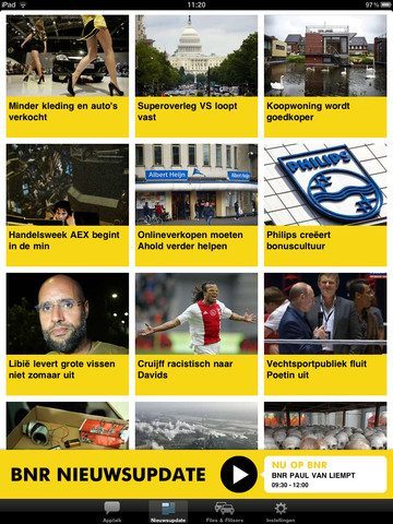 BNR Nieuwsradio heeft haar iPad-app grondig vernieuwend en een eigen layout los van de iPhone-versie gegeven. Een vernieuwing is dat je nu audioberichten kan versturen naar de nieuwszender.