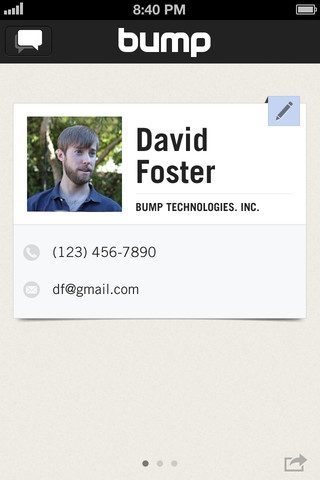 Bump, de ooit opzienbarende applicatie waarmee je twee iPhones tegen elkaar kan ‘boksen’ om je contactgegevens met een andere gebruiker te delen, is voorzien van een forse nieuwe update. Versie 3.0 zorgt er vooral voor dat de applicatie visueel weer meekan. De wat goedkope uitstraling van de app is vervangen door een strakke en vierkante interface, waarbij je profiel- en contactinformatie er voortaan uitziet als een echt visitekaartje. Met één bump zie je ook meteen welke contactpersonen je deelt met de ander.