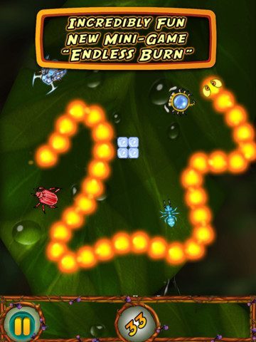 Endless Burn is een nieuwe minigame binnen het spel dat de principes van het spel compleet negeert. Door de iPad te kantelen stuur je namelijk niet een vlammetje langs een touw, maar beweeg je het vuur naar insecten toe. Hoe meer insecten je verbrandt, hoe langer je vlammende lijn wordt.