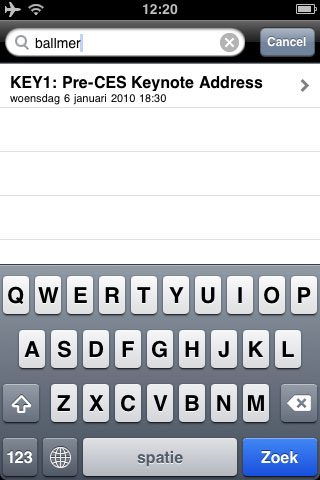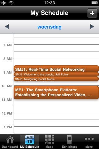 Bij het onderdeel evenementen kun je met een favorietensterretje aangeven bij welke evenementen je aanwezig wilt zijn. De persbijeenkomsten staan er niet in, maar wel de algemene keynotes, zoals die van Steve Ballmer. En ook al is er dit jaar meer aandacht voor Apple, de kans dat Apple zelf op het evenement aanwezig is en iets aankondigt is zo ongeveer nul procent. Er zijn wel sessies van externe betrokkenen, zoals een paneldiscussie over iPhone-apps als geldmachine en de culturele veranderingen die de iPhone teweeg heeft gebracht.