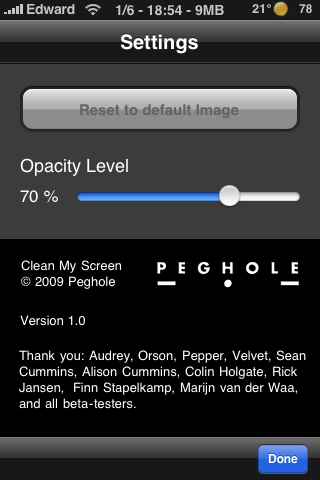 In het kader van grappig maar volledig zinloos is de applicatie Clean My Screen in de App Store verschenen. Met Clean My Screen kun je je iPhone scherm laten schoonlikken door je favoriete huisdier. Waarom vraag je je af? Geen idee, maar voor heel even is het best grappig. Wanneer je Clean My Screen start vind je de standaardachtergrond die je in het screenshot hiernaast ziet. Wanneer je op de afbeelding klikt wordt deze schoongelikt door de hond Pepper. Leuker is het natuurlijk om een eigen afbeelding te gebruiken in combinatie met je favoriete huisdier. Dit doe je door op het camera-icoon te klikken, ook kun je er dan voor kiezen om een nieuwe afbeelding met de camera te maken. De instellingen van de applicatie zijn simpel, je kunt hier enkel de transparantie instellen van de gebruikte afbeelding. In het filmpje (te zien hieronder) geven de makers een voorbeeld waarbij ze een screenshot van het home-scherm van je iPhone gebruiken als afbeelding om schoon te likken.