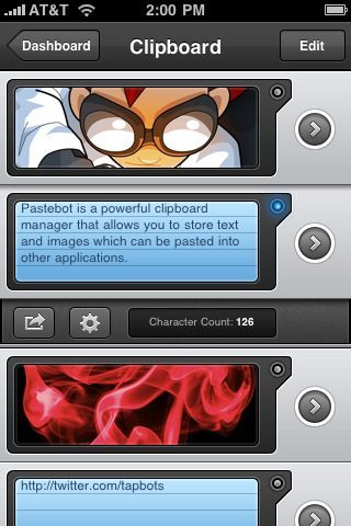 Het is zelfs mogelijk om een zoek- en vervangoperatie los te laten op je tekst. Afbeeldingen kun je eenvoudig omzetten met één van de veertien beschikbare filters. Een kleurenfoto wordt dan opeens zwart-wit of krijgt een betere helderheid. Opgeslagen items kun je binnen Pastebot voorzien van een titel of in mappen sorteren. Ook kun je vanuit Pastebot zoeken via Google, HTML toevoegen of de hoofdletters door kleine letters vervangen (of omgekeerd). Nieuw in versie 1.4 is ook de mogelijkheid om opgeslagen clippings via sms (alleen iPhone) te versturen en je kunt met één tap een afbeelding schermvullend weergeven. Tot slot bevat de laatste update de nodige bugfixes.