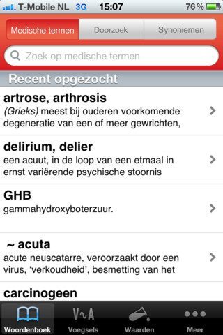 Coëlho is een uitgebreid woordenboek voor medische termen. Wat het af maakt, is dat recente zoekopdrachten worden onthouden. Ook kan je verwijzingen naar synoniemen en soortgelijke termen meteen selecteren om ernaar toe te gaan. Zo neem je snel de totale betekenis van een woord op.