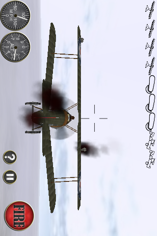 Je bestuurt het spel door middel van de accelerometer en het kompas in je iPhone. Je kunt door te swipen over het scherm ook om je heen kijken, zodat je goed kunt zien waar je vijand zich bevindt. De besturing is wat lastig als je deze moet combineren met het schieten op vijandelijke vliegtuigen. Het vergt daarom enige oefening, die je gelukkig voorafgaand aan het spelen krijgt. Deze manier van vliegen doet denken aan games als H.A.W.X. en F.A.S.T. op de iPhone, die een soortgelijke besturing hanteren.
