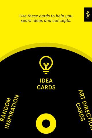 De Engelstalige app heeft een draaischijf met daarin verschillende functies. De sectie Idea Cards schotelt je foto’s met een motiverende tekst voor. Denk aan ‘wat is een gereedschap waar iedereen dagelijks wat aan heeft?’, ‘Hoe zou je een product herontwerpen’ en ‘Denk aan alles wat de competitie niet doet. Doe dat.’ De categorie Art Direction Cards komt overeen met Idea Cards, maar is veel meer gericht op design. Maar waar de kaarten echt tot zijn recht komen, is bij de Idea Clock. Daar zijn het geen losse flodders, maar worden de kaarten je opdrachten. Van tevoren stel je zelf in hoeveel kaarten je in hoeveel minuten tijd wilt beantwoorden. Stel dat je 3 kaarten wilt beantwoorden in 6 minuten, dan krijg je elke twee minuten een nieuwe kaart voorgeschoteld. Er klinkt een piep bij een nieuwe vraag en meerdere piepjes als je tijd erop zit. En dan maar hopen dat je wat op papier gekregen hebt.