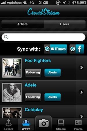 - Crowdstream kijkt op je iPhone en op Facebook welke artiesten je leuk vindt.