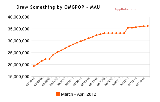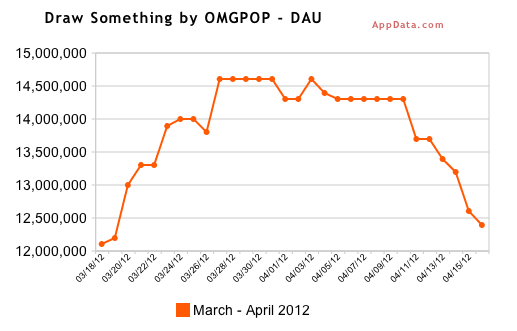 Dit valt te concluderen uit gebruiksgegevens van AppData, een dienst die via Facebook-logins kan zien hoe vaak een app gebruikt wordt. De resultaten zijn hierdoor niet honderd procent accuraat: je kunt Draw Something ook spelen zonder gebruik te maken van de Facebook-connectiviteit van de game.