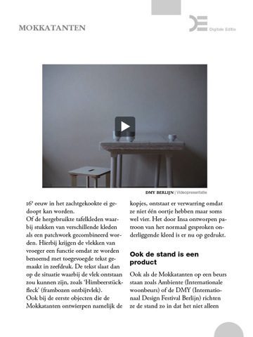 ‘Multimedia toepassingen’ en ‘interactief design’ zijn de toverwoorden waar de site van Digitale Editie mee strooit om het product aan te prijzen. In de praktijk betekent het dat je de pagina’s in zowel de horizontale als de verticale houding van de iPad kan lezen. Pagina’s hebben soms een fotogallerij of zijn juist een en al foto. Het magazine laat zien waar je kan drukken om naar de volgende pagina te gaan.