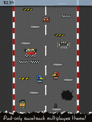 Doodle Jump iPadDoodle Jump was een van de eerste succesvolle games waarin je constant een kant op moet rennen of springen voor de iPhone. Spelers bevonden zich in een level met eindeloos veel platformen die de lucht in gaan, waar ze op springen door de iPhone naar links of rechts te tilten. Het spel baant zich nu ook een weg naar de iPad. Deze tabletvariant van het spel ondersteunt een hogere resolutie, waardoor je meer platformen op je scherm ziet hangen. Het eindeloze gespring van Doodle Jump dankte zijn succes deels aan de drang om hoge scores te halen. Ze worden namelijk niet alleen op je telefoon getoond, maar ook op leaderboards op Game Center en Facebook. Daardoor kun je met vrienden en andere spelers concurreren.