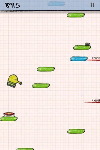 Verder zitten er nog een paar aardige easter eggs in Doodle Jump. Verander je naam maar eens in Ooga, Boo of Creeps… En mocht je wat inspiratie op willen doen, bekijk dan onderstaand filmpje waarin iemand een score van meer dan 100.000 punten weet te halen. Het wereldrecord staat trouwens op naam van ene Daniel Noteboom, met een score van maar liefst 1,3 miljoen punten.