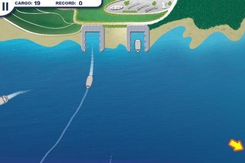 Het verwijderen van de schepen gaat op dezelfde manier als het naar de losplaats manoeuvreren, maar je hoeft alleen met een vingerveeg ongeveer de richting aan te geven (dus niet het volledige pad naar de rand van het scherm). De schepen hebben verschillende omvang: er zijn grote trage schepen die lang nodig hebben om te lossen, terwijl er ook snelle bootjes zijn, die in een paar seconden het scherm alweer kunnen verlaten. Je zult dus moeten plannen welke schepen voorgaan.