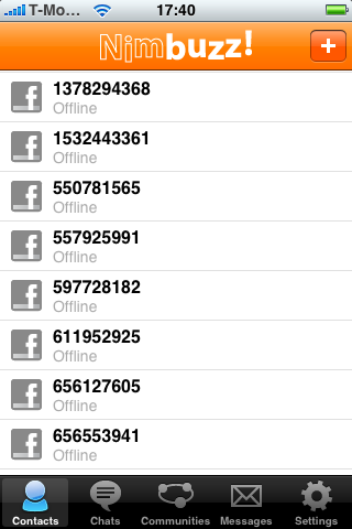Het tikken van berichten in landscape is wel een prima eigenschap: je kunt daardoor veel sneller typen. Bellen van contacten vanuit Nimbuzz gaat ook prima: je kunt gratis bellen naar bijvoorbeeld Windows Live- en Skype-contacten, maar als je een offline vriend probeert te bellen krijg je geen in-gesprektoon. Bij Facebook-contacten heb ik wel een puntje van kritiek: de Facebook-vrienden worden als nummers getoond, waardoor je niet kunt zien met wie je te maken hebt. Dat zal in een volgende versie ongetwijfeld worden opgelost.