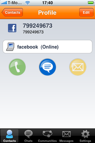 Makkelijker in gebruik dan Fring. Kunt duidelijk zien van welke community het contact is en de mail van hotmail komt er op binnen. Super! Kan me alleen niet aanmelden met Facebook, misschien verkeerde username, maar daar kan ik niet achter komen…