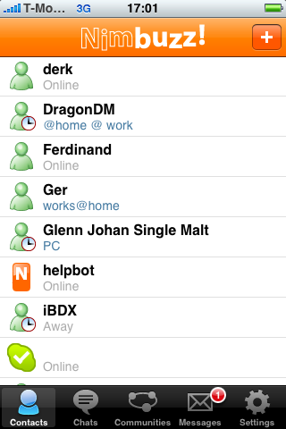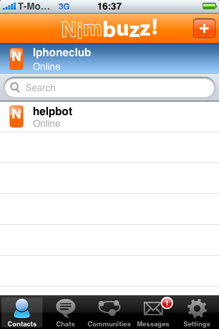 - Nimbuzz voegt automatisch het contact Helpbot toe.