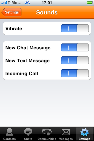Nu is het als Nederlander natuurlijk leuk om te weten dat Nimbuzz (ontwikkeld door het gelijknamige bedrijf uit Rotterdam) Nederlandse ook geschikt is voor Hyves, maar de mogelijkheden daarvan vallen een beetje tegen. Je krijgt geen echte toegang tot je Hyves-pagina, je ziet alleen vrienden die online zijn en kunt ze een chatberichtje sturen, vergelijkbaar met hoe de Hyves Kwekker werkt. Bellen en gewone berichten sturen is uitgeschakeld, evenals krabbelen. Bij Skype is het mogelijk om te chatten en te bellen, maar dat laatste werkt alleen via Wi-Fi: als je op 3G zit en op de belknop tikt krijg je een foutmelding “Please connect to a Wi-Fi network”. Dat ligt overigens niet aan Nimbuzz, maar aan de beperkingen die Apple stelt.
