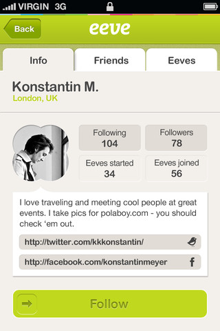 Het lanceren van een sociaal netwerk gebaseerd op foto’s op locatie lijkt nog niet zo heel makkelijk: het eerder dit jaar gelanceerde Color wist wat aandacht te genereren, maar de app sloeg niet aan. Het onder Google ontwikkelde Photovine dat daarop volgde werd geannuleerd voordat de testfase voorbij was. Dit houdt de makers van Eeve alsnog niet tegen om hun nieuwe app te lanceren. Hiermee deel je foto’s van een evenement, waar andere bezoekers makkelijk iets aan kunnen toevoegen dankzij de geolocatie die er aan gekoppeld wordt.