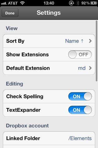 Geschreven tekst kan nu makkelijk gedeeld worden met Facebook en Tumblr. Beide services hebben al eigen iPhone-apps, maar Elements 2 is dankzij zijn woordenteller, spellingscontrole en TextExpander een goed alternatief voor wanneer je een flinke tekst wil schrijven. Nog een toevoeging in de mogelijkheid om bestanden om te zetten naar PDF of HTML en te delen met Dropbox, Evernote, iTunes of e-mail.