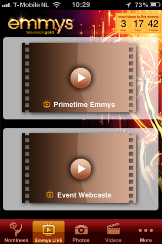Op het moment van schrijven duurt het nog maar 3 dagen, 17 uur en 42 minuten tot de Emmy Awards weer worden uitgereikt op de jaarlijkse televisie award show. Dat weten we, omdat de bijbehorende app ons tot in detail vertelt wanneer het allemaal van start gaat. Maar de applicatie bevat niet alleen een countdown: hij houdt ook voor je bij wie er genomineerd zijn, wat deze acteurs allemaal gedaan hebben en laat je zelfs naar videobeelden kijken.