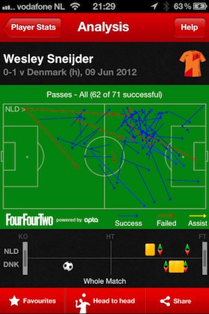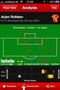 Naast alle geweldige EK-apps die we besproken hebben zijn er altijd nog losse apps te vinden die best de moeite waard zijn. Zoals de app Euro 2012 Soccer Stats Zone van FourFourTwo & Opta. Deze app laat van alle gespeelde wedstrijden de live-statistieken zien. Het gaat daarbij om alle passes, tackles, schoten op het doel en assists. Je ziet welke speler een bepaald deel van het veld heeft gedomineerd en kunt zien hoe een wedstrijd omslaat na een belangrijke gebeurtenis, zoals een buitenspel, penalty of doelpunt. Na afloop van de wedstrijd kun je nog doorgaan met analyseren, want ook de reeds gespeelde wedstrijden zijn aanwezig in de app.