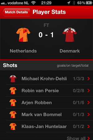 Euro 2012 Soccer Stats Zone: analyseer de EK-wedstrijden op je iPhone