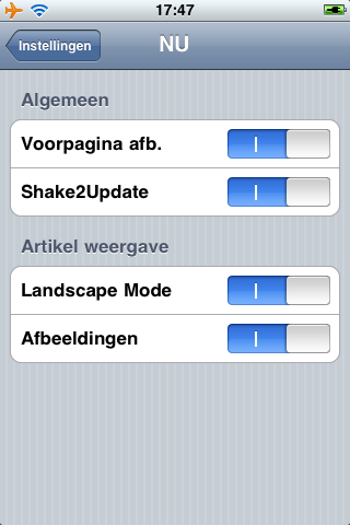 @Peperzaken: wat mij zelf erg stoort aan de NU.nl app is dat ie continu meedraait met je scherm. De landscape-mode is prima, maar als ik bijvoorbeeld in bed de iPhone nog een slag draai (dat ‘ie zeg maar op z’n kop is) dan draait NU.nl ook op z’n kop… Het zou fijn zijn als dit door de gebruiker in- en uitgeschakeld kan worden. ’t Is maar een ideetje 🙂