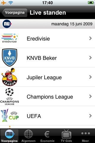 - Voetbal: de liveuitslagen.