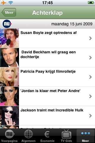 - Een lijst met nieuwtjes.