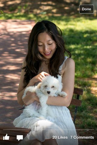 De app is strakker getrokken. Zowel de knoppen als de nieuwsfeed zelf zien er vierkanter en ook strakker uit, en foto’s worden geladen in een totaal herontworpen weergave. Je ziet foto’s fullscreen in beeld verschijnen als je erop drukt, waarna je in een transparante balk het aantal likes en reacties ziet. Erop drukken resulteert in een pop-up venster met die laatste reacties. Met een simpele veeg naar beneden, sluit je het venster.