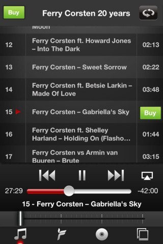 In verhouding tot gratis artiestenapps als bijvoorbeeld die van Marco Borsato, waarin je ook kan deelnemen aan fanuitspattingen en allerlei foto’s en video’s kan bekijken, is de nieuwste applicatie van Ferry Corsten misschien aan de dure kant. Je kan het ook zo zien: als je deze plaat in de winkel had gekocht, zou je een pak duurder uit zijn. Daar valt weer tegenin te brengen dat je een cd overal kan in stoppen en in je playlist op de computer kan zetten. Ferry’s nieuwste mixplaat bereik je alleen vanuit de iPhone-app.